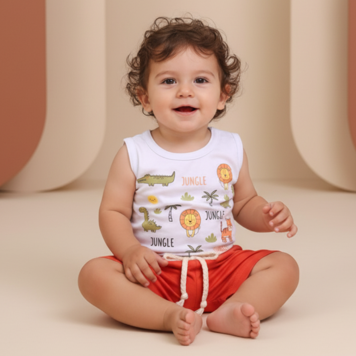 Kit Bebê Menino – Body Regata + Short em Malha Premium | Estampa DTF Leve