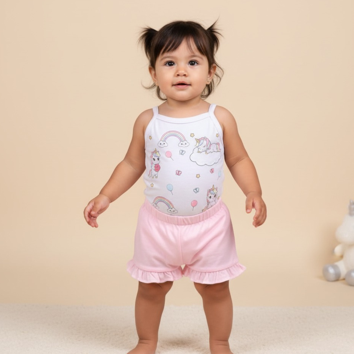 Encante-se com este conjunto delicado e superconfortável, pensado para acompanhar sua pequena com muito charme, praticidade e liberdade em todos os momentos! ✨🎀
